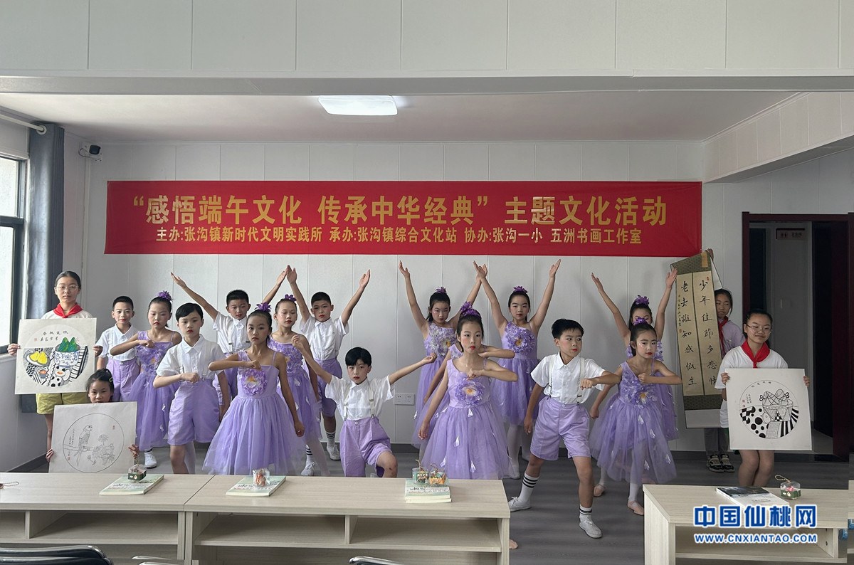 當(dāng)天,張溝鎮(zhèn)新時(shí)代文明實(shí)踐所、張溝鎮(zhèn)綜合文化站、張溝一小、五洲書畫工作室聯(lián)合舉辦開展“感悟端午文化 傳承中華經(jīng)典”主題文化活動(dòng)。活動(dòng)中,通過講述屈原的故事、端午文化知識有獎(jiǎng)?chuàng)尨稹⒓w朗誦《滄浪之水》和唐詩《端午》、端午文化書畫作品展示解說等,讓孩子們提前度過了一個(gè)收獲而有意義的端午節(jié)。(仙桃網(wǎng)記者 盛慧慧 通訊員 胡浩)
