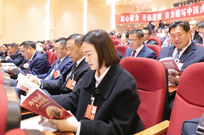 為進(jìn)一步提高征兵宣傳質(zhì)量,仙桃市人武部組織人員深入“兩會(huì)”現(xiàn)場(chǎng)開(kāi)展征兵宣傳活動(dòng),為廣大人大代表、政協(xié)委員發(fā)放征兵宣傳手冊(cè)、征兵宣傳單,并詳細(xì)介紹征兵工作安排和應(yīng)征入伍優(yōu)待政策。圖為1月7日,參會(huì)代表認(rèn)真觀看征兵宣傳手冊(cè)。(攝影 記者 鄭恒)