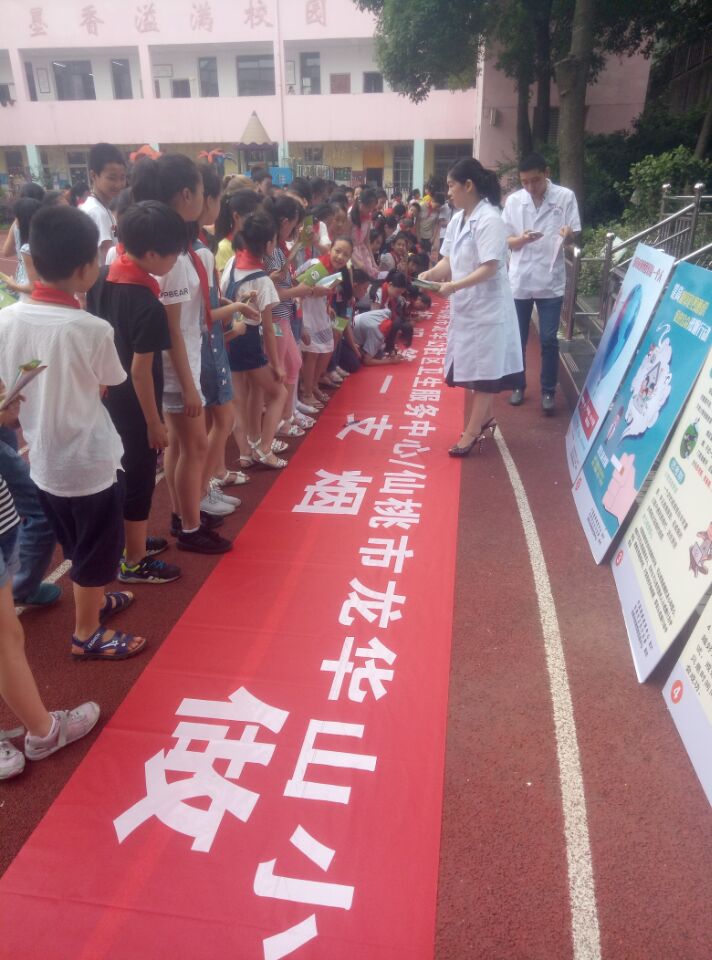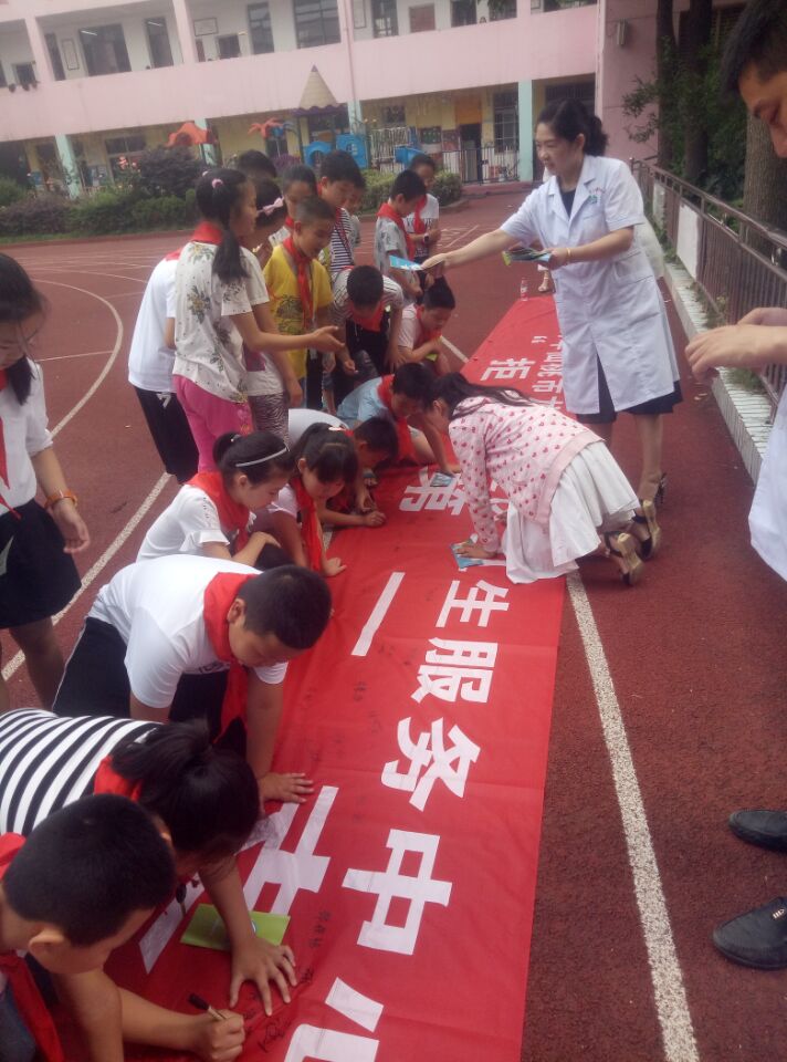 活動現場,龍華山辦事處社區衛生防疫服務中心專家解讀了《據吸第一支煙,做禁煙新一代》活動意義,闡明了全面禁煙工作的背景和意義,分析了煙草的危害性,強調了全面禁煙的責任和義務,講解了吸煙的各種危害和禁煙的重要性;隨后,師生們紛紛加入到簽名隊伍中來,現場氣氛十分熱烈。不一會,在“從我做起拒絕煙草,創建‘無煙校園’;遠離煙草,做不吸煙的新一代”的20米長條幅上,密密麻麻地寫滿了名字。