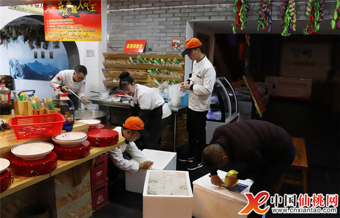 早上7點半,又見炊煙土菜館內,一片忙碌景象。你發糖我擺碗、你掌勺我放蓋、你數數我裝箱,工作人員各司其職、配合默契、小心翼翼地裝好每一碗湯圓。隨后,兵分三路,將熱氣騰騰的湯圓送往八個環衛工人集中點。