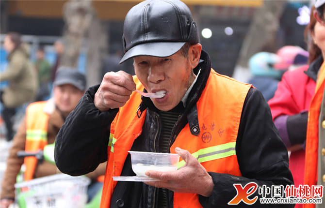 3月2日,是農歷正月十五元宵節。中國仙桃網、市環衛局、又見炊煙土菜館聯合開展了“情系環衛工人 共度元宵佳節”活動,為600位環衛工人送去湯圓,將濃濃的關愛之情送給城市美容師。