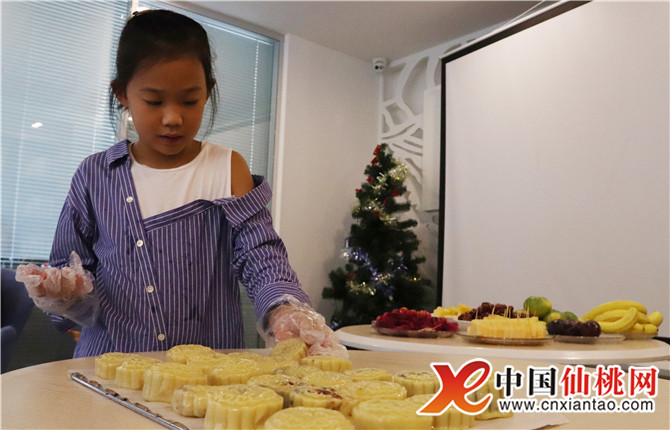 相比家長,不少小朋友更心靈手巧,看,9歲杜旻璟正全神貫注做月餅,包餡、搓圓、用模具壓、輕輕擠出,一氣哼成,熟練的手法、認真的模樣、漂亮的成品得到大家一致贊賞?!拔蚁矚g動手做東西,這是我第一次做月餅,我知道月餅就是為了過中秋呀!我很喜歡這樣的體驗,過年的時候我還跟著大人們做米團子了,感覺這樣很有過節的氛圍?!?/p>