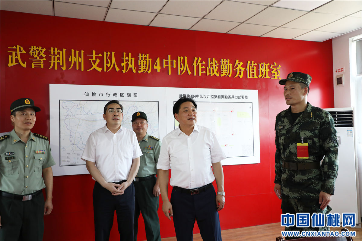 羅聯峰、孫道軍隨后走訪了駐仙某部哨所、武警荊州支隊執勤三大隊仙桃中隊和執勤4中隊,為他們送去慰問物資,詳細詢問營區建設、訓練執勤和官兵生活等情況,感謝他們為國防和軍隊建設、地方經濟社會發展作出的不懈努力,并致以節日的問候和崇高的敬意。