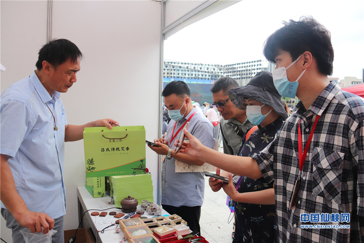 在襄陽盛世唐城展區,牛肉面、綠茶、貢米等50多種農特產看得人眼花繚亂,文創T恤、帽子、挎包、折扇、雨傘同樣飽受游客喜愛。主播“素蝶”一邊拿起手機與網友們互動,一邊向現場游客熱情推銷。
