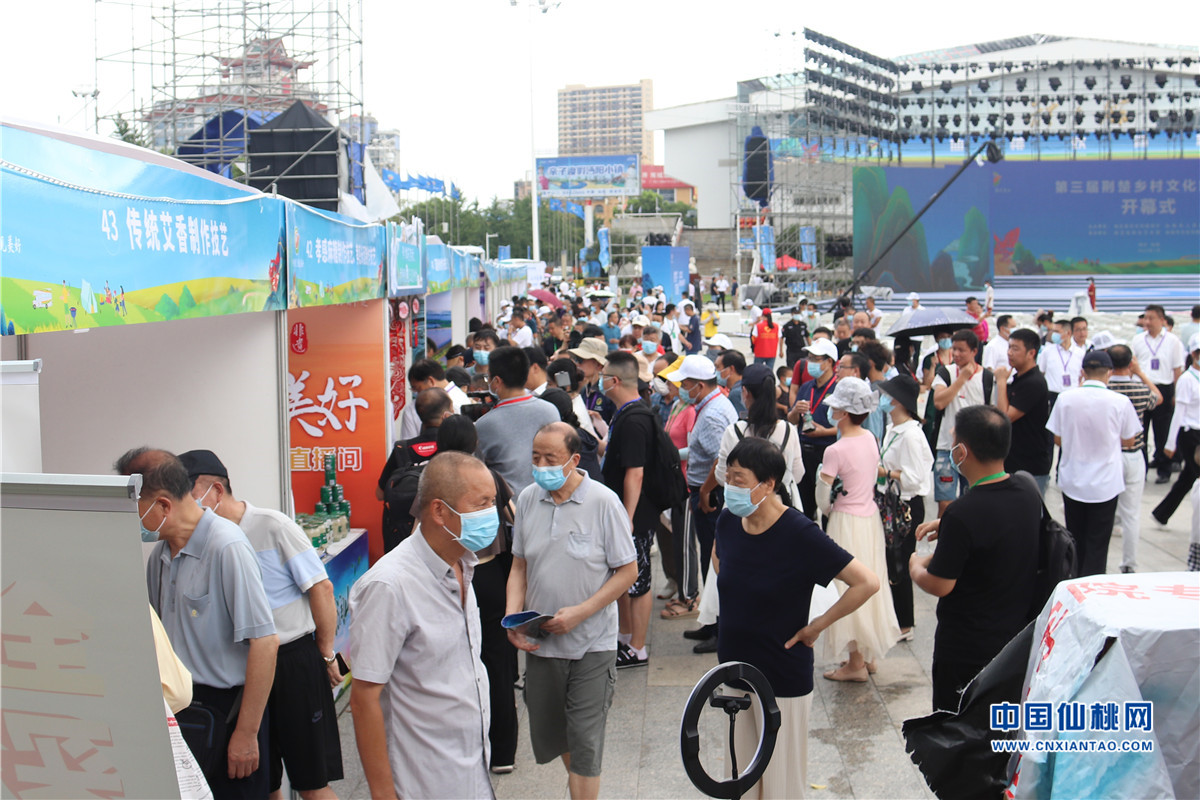 7月8日,市體育廣場人流如織,第三屆荊楚鄉村文化旅游節“村游”趕大集熱鬧開市。